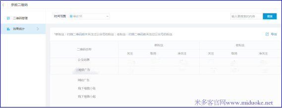 在这个酒香也怕巷子深的时代,不会做宣传推广,基本只有死路一条。首先在用户量大的一些平台,比如搜索引擎,微博,微信、论坛等,结合这些平台的属性和功能,把不同的创作内容布局在平台容易被用户找到的地方,然后根据不同平台的用户群体、关注点、用户习惯不同,利用米多客为每个渠道生成专属二维码,根据后台生成数据报表进行推广效果统计分析,哪里来的粉丝比较多,哪里来的粉丝是我们的目标群体,都能一清二楚,根据这些来为我们的公众号推广调整最佳方案。