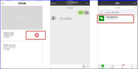 1、小程序内:开发者在小程序内添加客服消息按钮组件,用户可在小程序内唤起客服会话页面,给小程序发消息;
