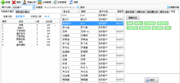 米云客服系统还能够对客服进行标签化管理。将具有相同特性的客户归入同组,进行标签化统一管理。以某金融公司为例,将长期通过公司进行理财的客户归入“忠实客户组”,将偏好高风险高收益的客户归入“收益组”等,将客户贴上标签,应对客户的需求变化,及时补充完善,以便更加准确把握客户。