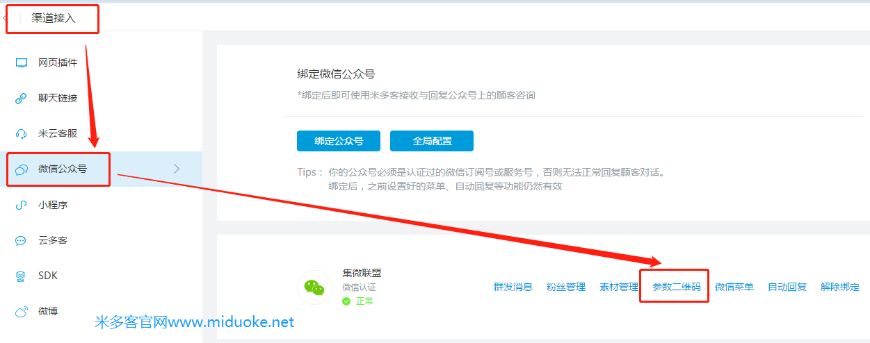 2. 接入微信公众号客服软件(米多客软件)