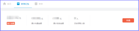 1. 进入米多客互动平台,选择【微信红包】功能,首先点击账户充值按钮,对账户进行充值。