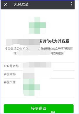 5.此时,微信公众平台会发送邀请信息到客服人员的微信里,客服人员登录手机微信,点击“接受邀请”即可成为公众号的客服,与粉丝沟通。