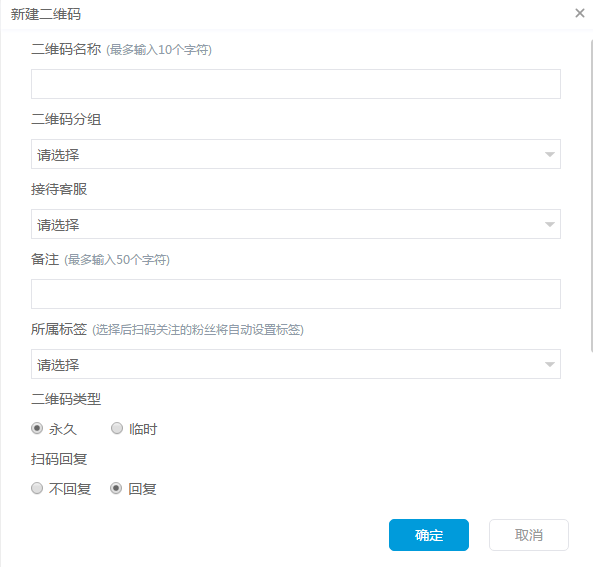 4. 在这里我们就可以填写参数二维码的信息,二维码名称,分组,还可以设置专属咨询师接待,比如按不同的医美项目进行分类;还可以设置扫这个码,粉丝关注自动回复对应内容。