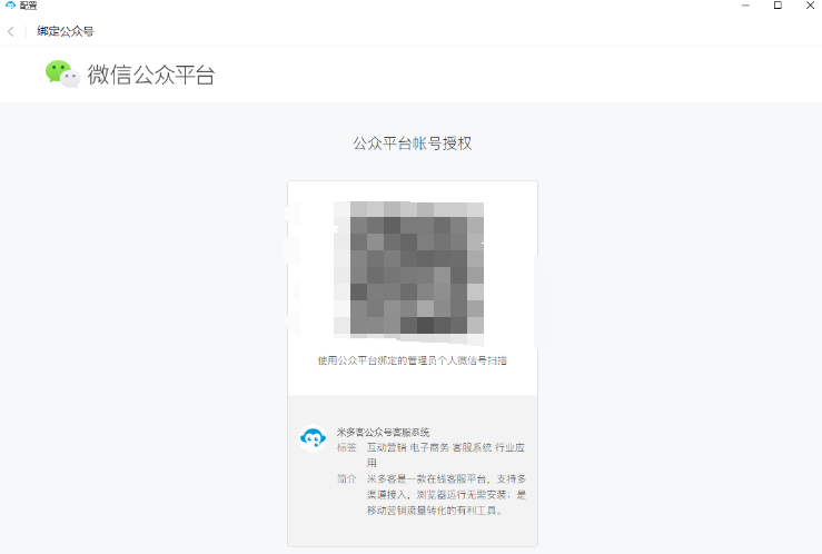 我们以米多客微信公众号客服系统为例,下载安装后,向客服人员申请账号密码,登录后进入【设置中心】-【渠道中心】-【微信公众号】,点击绑定微信公众号,使用管理员账号进行扫码即可快速接入。
