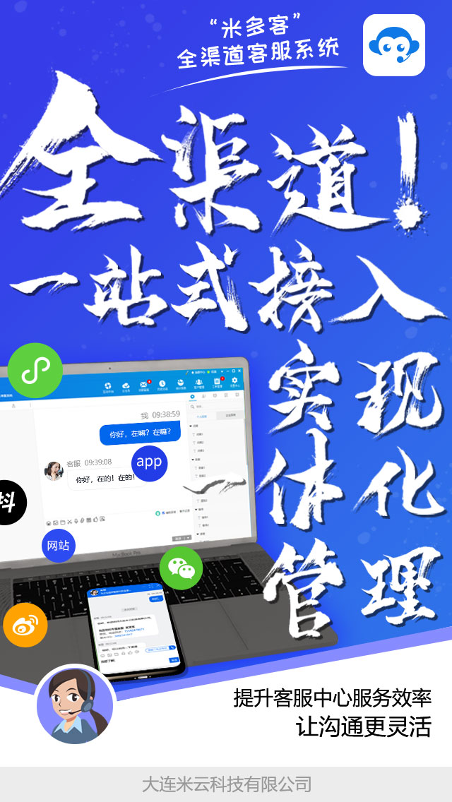 米多客在线客服软件是一款全渠道在线客服软件,运用高科技技术实现各个媒介上访客与网站客服的即时通信,访客无需安装任何插件即可与在线客服人员对话沟通。拥有以下功能: